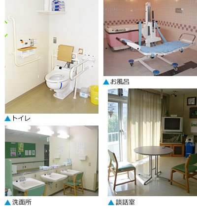 歯ブラシ(替えも用意)、コップ、洗面器、くし、目ざまし時計、シャンプー・石鹸、髭剃り、タオル、バスタオル2枚、ティッシュ、パジャマ・下着などの着替え、ゴミ箱(袋でも可)、洗濯物入れ(エコバック等)、普段着(運動しやすい服装)、運動靴(着脱しやすい物)など ※必要時―オムツ、尿とりパット、おしりふき(2階売店で販売しています) |