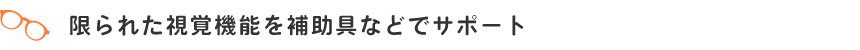 ロービジョン者には、「視力が低下している」「視野が狭い」「まぶしくて見づらい」など、さまざまな症状があります。限られた視覚機能を上手に活用し、さらに視覚に頼らない方法も含めて、日々の暮らしを支えるのが、ロービジョンケアです。